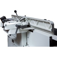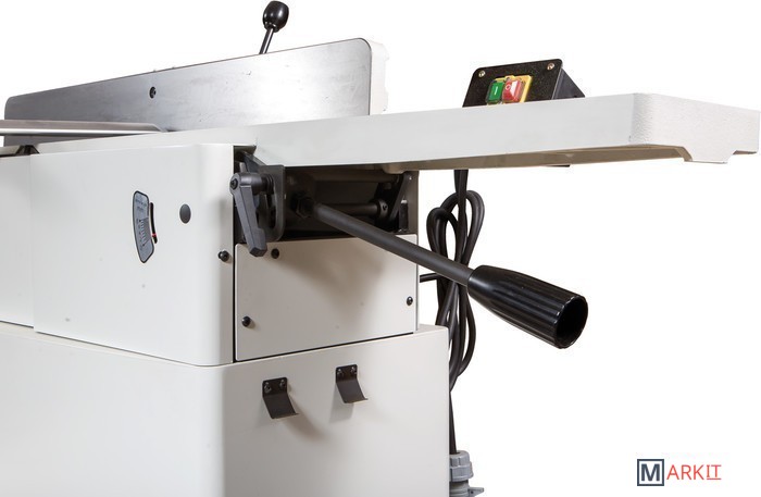 Ножевой вал helicalРегулировка глубины строганияРегулируемый фуговальный упорРегулируемое ограждение ножевого валаФуговальные столы из чугунного литьяФуговальный упор из чугунного литьяJJ-866HH новый фуговальный станок Jet профессионального класса с шириной строгания 200 мм, оборудован длинными массивными чугунными столами и мощным трехфазным двигателем. Штатно укомплектован строгальным валом helical, который незаменим при работе с твердыми породами, по древесине с сучками и просто при интенсивной эксплуатации.Отличительная особенность новинки – параллелограммный механизм регулировки высоты столов. В сегменте компактного оборудования такая схема получила распространение сравнительно недавно и пока еще более характерна для тяжелого промышленного оборудования. Вместо наклонных скользящих направляющих в ней используются рычаги на осях, нет ни винтов, ни эксцентриков, а усилие от рукоятки прикладывается непосредственно на сторону параллелограмма. Внутреннее трение и люфты в такой конструкции минимальны, что позволяет при настройке перемещать тяжелые столы (регулируются оба: и приемный, и разгрузочный) с наименьшими усилиями и максимально точно.Станок имеет массивный чугунный фуговальный упор с регулировочным механизмом червячного типа. Он обеспечивает точную и жесткую установку угла наклона в диапазоне от прямого положения до 45° влево или вправо.Современный, точный и эргономичный фуганок, предназначенный в первую очередь для деревообработчиков-профессионалов.