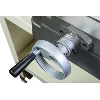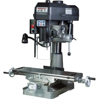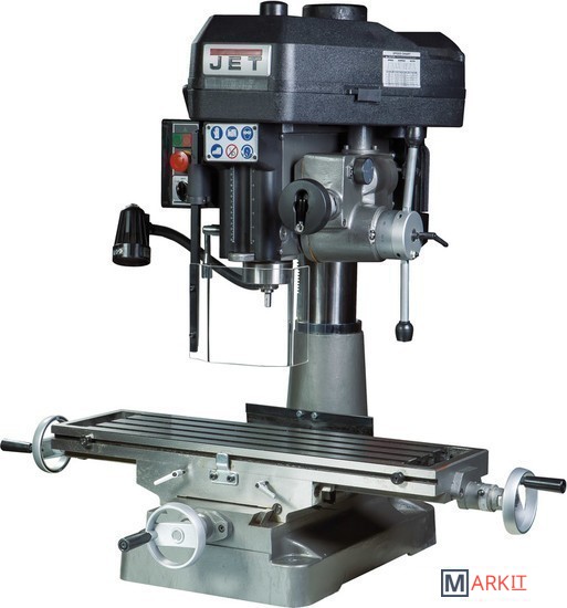 Модель JMD-18PF представляет собой сверлильно-фрезерный станок схожий по своим функциональным параметрам и техническим характеристикам со станком JMD-18. Существенным отличием модели от своего аналога является наличие функции автоматической подачи шпинделя в режиме трех скоростей. Такая особенность позволяет осуществлять сверление в режиме автоподачи, достигая высокой точности обработки. Наличие в двигателе функции реверса позволяет выполнять работы по нарезанию резьбы. Включение реверса осуществляется с помощью кнопки, расположенной на ручке подачи шпинделя.Сверлильно-фрезерный станок JMD-18PF оборудован механизмом поворота головы в диапазоне 0-360 0, обеспечивая дополнительные возможности для работы в различных режимах резания. Фрезерная головка может менять положение в горизонтальной плоскости, создавая дополнительные преимущества при обработке заготовок. Наличие функции контроля над глубиной сверления повышает производительность работ и качество обработки. Модель рассчитана на работу с режущими инструментами, максимальный диаметр которых составляет при сверлении- 16 мм, при фрезерных работах с торцевой фрезой – 63 мм. Режущие инструменты устанавливаются в сверлильный патрон и оправки с конусом МК-3. Зажимная тяга шпинделя М12. Ход пиноли шпинделя составляет 90 мм. В модели установлен механизм микроподачи шпинделя, имеется устройство регулирующее вылет шпинделя. Для повышения жесткости фиксации опора шпинделя оснащена коническими подшипниками.Станок оснащен асинхронным электродвигателем мощностью 2,6 кВт. Двигатель имеет реверсный ход. Вращение шпинделя обеспечивается ременным приводом с концевым выключателем. Ременная передача позволяет регулировать частоту вращения шпинделя в 12-ти позициях. Диапазон частоты вращения шпинделя составляет 100-2160 об/мин. На модели станка JMD-18PF имеется возможность осуществлять сверление в режиме автоподачи шпинделя на скорости 0,12-0,18-0,25 мм/об.Станок оборудован прецизионным крестовым столом, имеющего три Т-образных паза. Ширина пазов составляет 14 мм, позволяя устанавливать на станок дополнительные элементы крепежной оснастки. Станок в оснащенном состоянии весит 290 кг. Оборудование комплектуется сверлильным патроном, торцевой фрезой диаметром 75 мм и лампой освещения.