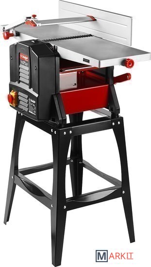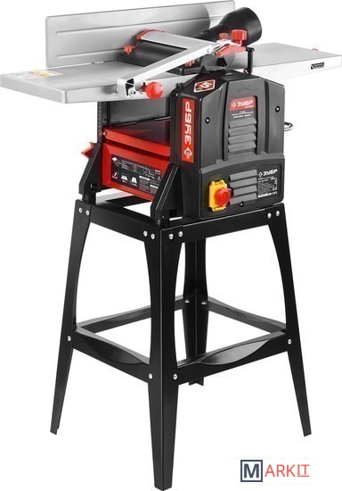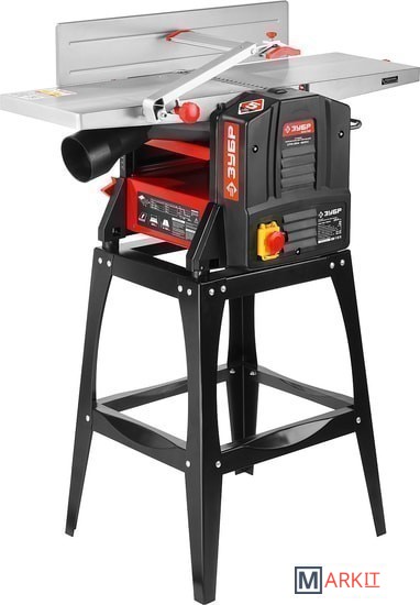 Функциональный станок 2в1 с возможностью обработки заготовок шириной до 254 ммЭкономичный двигатель с защитой от перегрузкиМагнитный пускатель исключает самопроизвольный пуск станка после временного отключения электропитанияАвтоматическая подача заготовки (рейсмус)Регулировка наклона направляющего упора на угол от 0 до 45°Ременная передача защищает двигатель от перегрузок и снижает шум при работеВысокая скорость вращения ножевого вала обеспечивает получение поверхности высокой чистотыДва ножа из быстрорежущей стали подходят для обработки как мягких, так и твердых пород древесиныПростой переход от одной операции к другойЛитые полированные рабочие столы облегчают подачу заготовки в зону резанияВ зависимости от выполняемой операции, патрубок пылесборника легко устанавливается в необходимое положение, обеспечивая чистоту рабочего местаПодставка для удобной установки станка в комплектеОписаниеКомбинированный станок, сочетающий в себе функции рейсмуса и фуганка, способен обрабатывать заготовки из древесины толщиной до 120 мм и шириной до 254 мм. Простой в эксплуатации и не требующий специального обслуживания, станок ЗУБР значительно расширяет функционал любой мастерской по дереву.ПрименениеДля одностороннего плоскостного строгания плоских заготовок из древесины в размер по толщине с предварительной обработкой базовой плоскости.