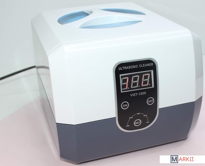 Мойка ультразвуковая VGT-1200 - прибор имеющий влагозащищенный изолированный корпус. Дополнительно мойка оснащена цифровым таймером на 5 режимов с функцией памяти. Крышка оснащена синим светодиодом. Антистатическое исполнение. Цифровой индикатор отображает мощность и время работы.Ультразвуковая мойка имеет большой резервуар объемом 1.3 л, который позволяет одновременно обрабатывать большое количество инструментов. Сам резервуар выполнен из нержавеющей стали.Ультразвуковая частота 40000 Гц.Мойка из нержавеющей стали SUS304.5 циклов с цифровым отображением времени 90, 180, 280, 380 и 480 секунд. Внешний размер (ДxШxВ): 228 x 183 x 158 мм. Размер бака (ДxШxВ): 175 x 145 x 70 мм. Вес 1.75 кг.