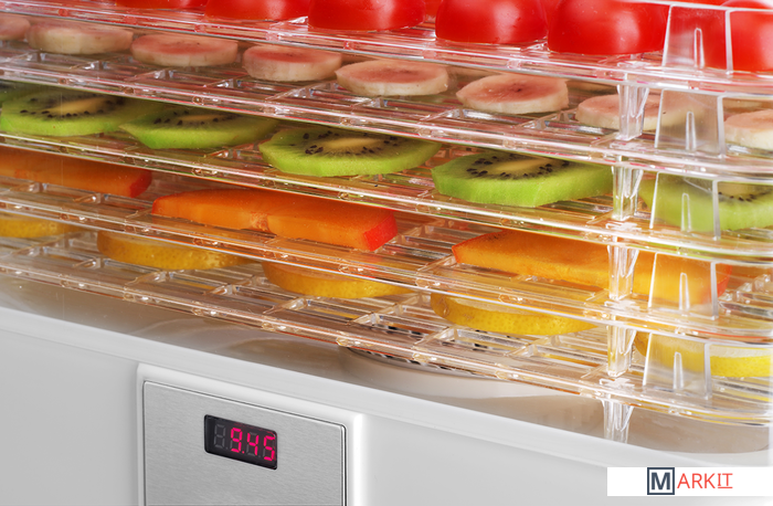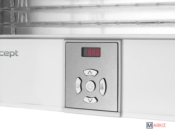 Сушка фруктов, овощей, грибов, зелени, цветов и макаронных изделийКоличество экранов: 5 прозрачных экранов + крышкаЦифровое управлениеУстановка расстояния между ситамиПрограмма по умолчанию: 70 ° C / 10 ч.Равномерная сушкаТАЙМЕР: 30 мин. - 99 ч (каждые 30 мин.)Площадь экрана: 0,3 м2Защита от перегреваТихая работа: макс. 60 дБ