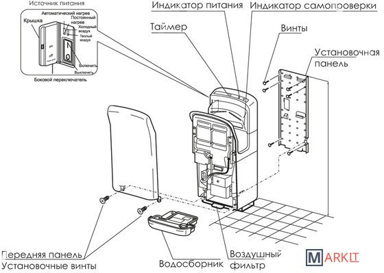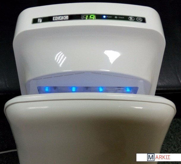Интеллектуальное управление Уникальная опция от компании BXG, которой нет и в более дорогих моделях. Включение кнопки «автоматический нагрев» означает, что воздух будет автоматически нагреваться при температуре окружающей среды ниже 23 градусов. В этом режиме поддерживается температура воздушного потока в районе 24 - 40 градусов. В режиме «постоянный нагрев» автоматически подается теплый воздух.Многорежимность использования сушилки BXG-JET-7000 гарантирует, что процесс сушки всегда будет комфортным при любой температуре в туалетной комнате. Встроенная неоновая подсветка и мерцающие светодиоды указывают направление движения воздушных масс. Подогрев воздуха может быть отключен с целью снижения уровня шума и энергозатрат. Гигиена и чистота Избыток сдуваемой с рук воды стекает в водосборник, а не стекает по стенкам сушилки и не падает на пол. Это позволяет туалетной комнате содержаться в чистоте. Специальное антибактериальное покрытие корпуса сушилки в местах, находящихся в непосредственной близости от рук, предотвращает размножение на ее поверхности грибков и плесени. Встроенные угольные и мембранный НЕРА фильтры трехступенчато фильтруют воздух и очищают его от мельчайших частиц пыли, вирусов и бактерий. Поэтому руки обдувает уже абсолютно чистый и безопасный воздух. Индикаторы работы В сушилке встроены функции самодиагностики с целью обнаружения технических проблем. Интеллектуальная система диагностики информирует сервисную службу о необходимости опустошения водосборника и чистки НЕРА фильтра. Эти процедуры необходимо производить минимум 1 раз в неделю. Безопасность Сушилка обладает высокопрочным корпусом, полностью защищенным от актов вандализма, ударов, химических веществ и высоких температур. Высокая степень влагозащиты корпуса IPX4 свидетельствует о том, что он полностью защищен от попадания внутрь воды и, соответственно, от угроз удара током. Система внутреннего микропроцессорного управления защищает устройство от перегрузок и перегрева. Сушилка для рук BXG-JET-7000 рекомендуется к установке в местах с повышенным посетительским трафиком: аквапарках, торговых центрах, аэропортах, крупных предприятиях, а также местах с высокотехнологичным оснащением туалетных комнат.