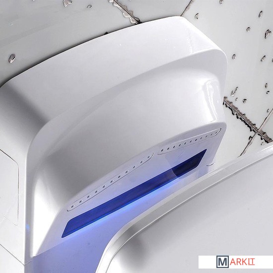 Данная модель рукосушителя снабжена переключателем холодный/горячий, что дает возможность использовать холодный воздух (при мощности устройства 900 Вт) или горячий воздух (при мощности устройства в 2000 Вт).Влага с рук собирается в каплесборнике объемом 0.5 л, который периодически необходимо опустошать (это не требует специальных навыков).