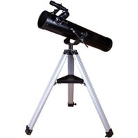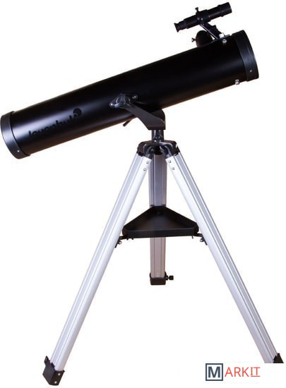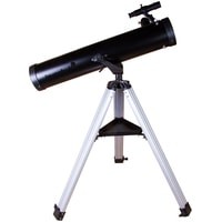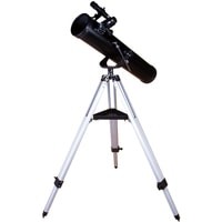 Levenhuk Skyline BASE 100S создан для изучения космических глубин! Его оптических возможностей хватит, чтобы увидеть все объекты каталога Мессье – туманности, двойные звезды, галактики, шаровые и рассеянные скопления и многое другое. Покажет он и ярчайшие объекты каталога NGC, а также планеты Солнечной системы и Луну. Это универсальный телескоп, но дальний космос выглядит в нем особенно хорошо. Рефлектор ориентирован на начинающих астрономов, прост в управлении и комплектуется всеми необходимыми аксессуарами.Чтобы навести телескоп на интересующий вас объект, не нужно читать инструкцию или учебники. Азимутальная монтировка не сложнее обычного штатива. Нужно лишь навести оптическую трубу на нужный участок неба, свериться с картинкой в 5-кратном оптическом искателе и отрегулировать резкость – красоты космоса уже перед вами! Управлять телескопом сможет даже ребенок, настолько это просто.Устойчивость телескопу придает классическая алюминиевая тренога. Она легкая, прочная и надежная. Устанавливать ее можно даже на неровные поверхности – каждая ее ножка регулируется по высоте независимо от других. Есть лоток для аксессуаров, на котором можно размещать окуляры, компас, карты звездного неба и другие небольшие предметы. Два окуляра уже включены в комплект поставки. С одним телескоп дает небольшое увеличение (35х), с другим – значительное (175х).