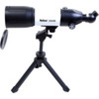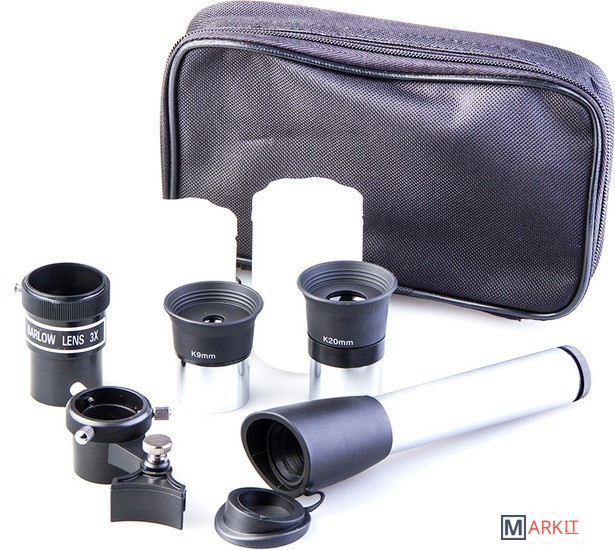 Компактный телескоп-рефрактор. Удобен как для домашних астрономических (и не только) наблюдений, так и для вылазок на природу. Его длина всего 45 см, он легкий и компактный. При этом телескоп вовсе не детская игрушка! Его ахроматическая оптика дает хорошее, четкое, резкое изображение без окрашенности по краям поля зрения. С набором окуляров, входящих в комплект, можно получить увеличение от 17,5х (ближняя точка фокусировки ок.5м) до 116,4х.