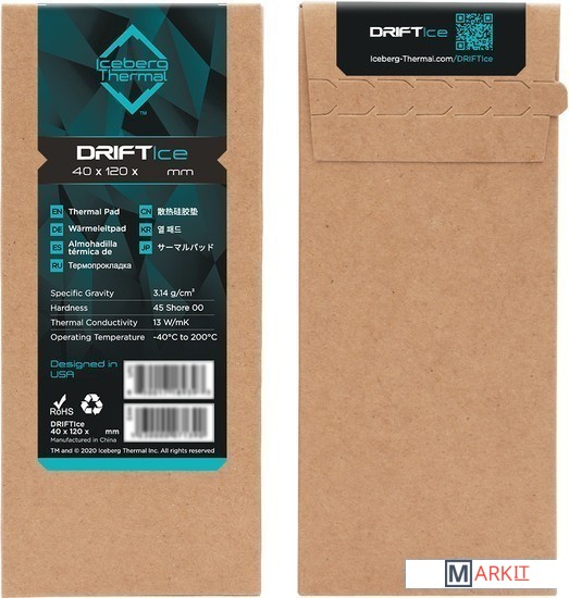Markit » Системы охлаждения » Термопрокладка Iceberg Thermal DRIFTIce 120x40x1.5 мм DRIFTICE15-B0A