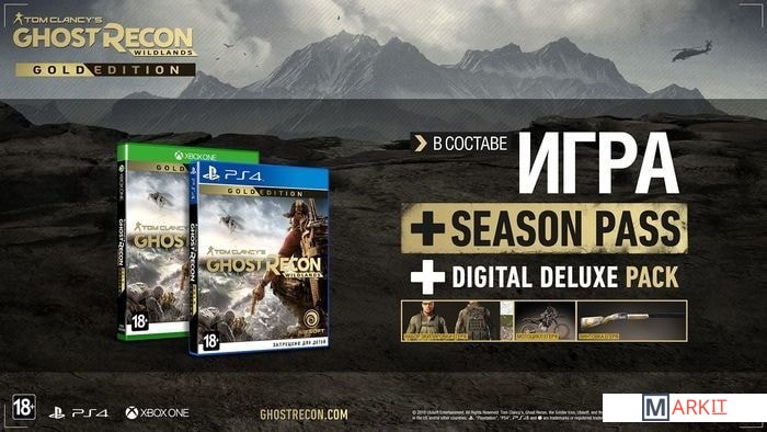 Gold Edition включает Season Pass, благодаря которому вы получите доступ к двум дополнениям, а также весь дополнительный контент, входящий в Deluxe Pack.- Игра Tom Clancy's Ghost Recon: Wildlands- Season Pass: продлите удовольствие от игры, получив д / Gold Edition включает Season Pass, благодаря которому вы получите доступ к двум дополнениям, а также весь дополнительный контент, входящий в Deluxe Pack.- Игра Tom Clancy's Ghost Recon: Wildlands- Season Pass: продлите удовольствие от игры, получив д