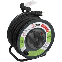 Удлинитель ЭРА RMx-4es-3x2.5-50m-IP44(KG) на металлической катушке, с заземлением, с выключателем, КГ 3х2,5мм2, 4 гнезда, IP44, 16А / 3500Вт, провод 50м, оснащен несколькими розеточными гнездами для возможности подключения одновременно до 4 электроприборов на удаленном расстоянии от стационарной розетки. Данная модель удлинителя на катушке подойдет для использования на даче, на строительной площадке, в производственных цехах и пр. Характеристики провода КГ позволяют работать с удлинителем в широком диапазоне температур (от -40 градусов до +50 градусов по Цельсию), что подойдет для любого времени года.