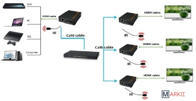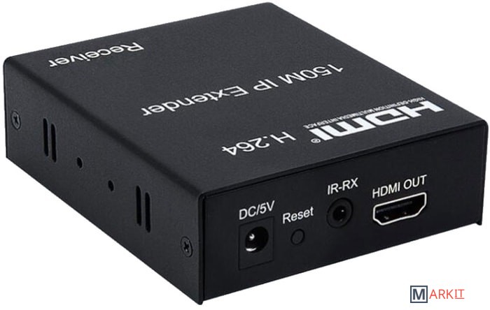 Ресивер HDMI-удлинителя по витой пареОсобенность: используется TCP/IP-протокол,кодировка H.264, битрейт 8Mbps, передача ИК-сигнала(внешние датчики IR-Tx/Rx), совместим с комплектом VE046Дальность передачи сигнала: до 150 метровМаксимальное разрешение: Full HD 1080p/60Hz (1920x1080)Напряжение питания: 5В