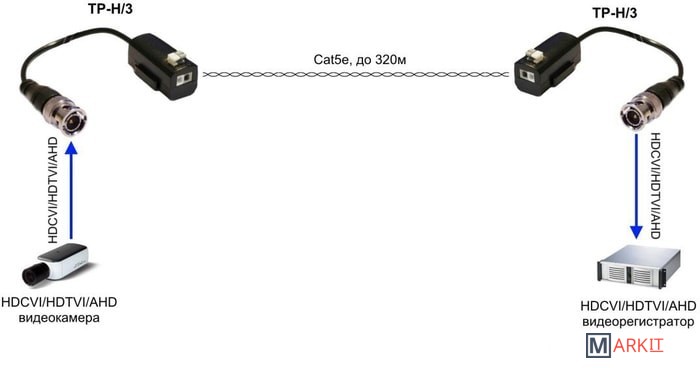 Комплект из двух пассивных приемопередатчиков предназначен для передачи видеосигнала HDCVI/HDTVI/AHD по витой паре.Максимальное расстояние передачи видеосигнала составляет 320м при разрешении 720р (AHD) и 250м при разрешении 1080р (AHD). Для разрешения 5 Mpix (AHD) максимальное расстояние передачи составляет 130м. Присутствует поддержка разрешений вплоть до 4К (8 Mpix) для HDCVI видеосигнала.TP-H/3 выполнен в пластиковом корпусе с зажимной клеммной колодкой для витой пары и разъемом BNC, закрепленном на гибком кабеле.