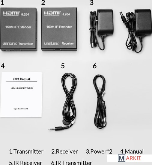 Markit » Кабели, адаптеры, разветвители » Удлинитель USBTOP HDMI FullHD 1080P активный на 150м по витой паре RJ45, комплект