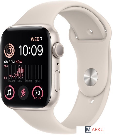 Второе поколение умных часов Apple Watch SE.Осовные особенности:- защищенный стеклом Iron-X OLED Retina дисплей с яркостью до 1000 нит- датчик сердечного ритма второго поколения- отслеживание показателей сна- поддержка GPS стандарта L1, ГЛОНАСС, Galileo, QZSS и BeiDou- компасс и встроенный альтиметр- защищенный влагостойкий корпус- водонепроницаемость при погружении до 50 метров- обновленный гироскоп и акселлерометр, которые позволяют фиксировать падение и удар при аварии- встроенный динамик и микрофон для приема звонков- поддержка бесконтактных платежей ApplePay- беспроводная зарядка по стандарту Qi (с поддержкой MagSafe)- в комплекте метровый зарядный кабель с разъемом USB Type-C- доступ к вотчфейсам от NikeГлавным отличием более бюджетной версии от Series 8, является отсутствие режима Always-on-Display и отсутствие датчиков ЭКГ, измерения температуры и измерения насыщенности крови кислородом.