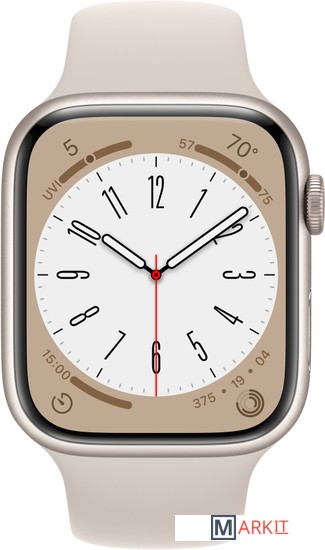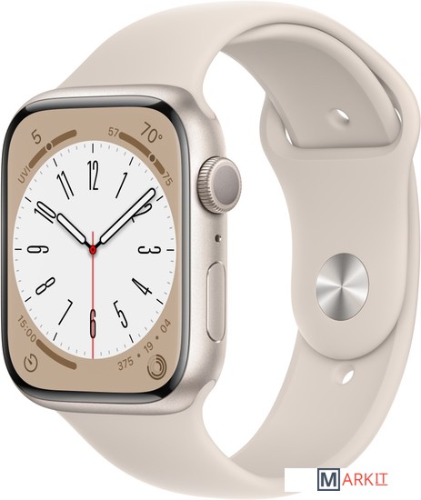 Markit » Умные часы и браслеты » Умные часы Apple Watch Series 8 45 мм (алюминиевый корпус, звездный свет/звездный свет, спортивный силиконовый ремешок M/L)
