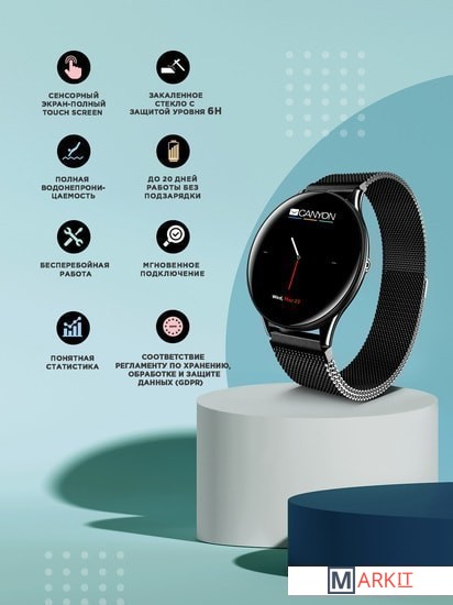 Стильные корпус и ремешок часов сделаны из металла, что придает часам прочность и долговечность. При чрезвычайно тонком корпусе, эти часы обладают внушительным набором датчиков и функций, упрощают управление камерой, позволяют отслеживать уведомления и звонки, мотивируют вас вести здоровый образ жизни. Интуитивное подключение и удобство синхронизации со смартфоном обеспечит приложение Canyon Life.