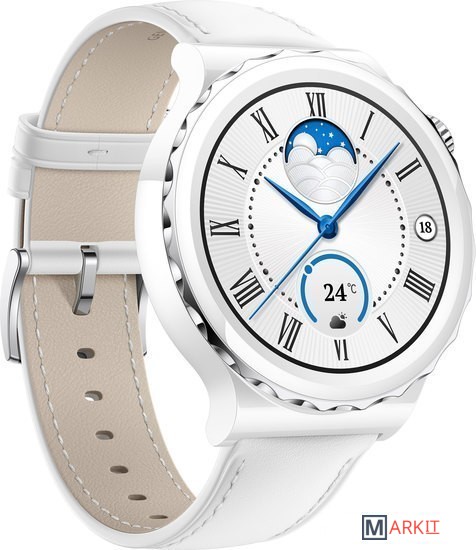 Смарт-часы Huawei Watch GT 3 Pro Ceramic Edition навеяны идеей слияния восточных и западных традиций, а источником вдохновения для разработчиков выступила картина Боттичелли «Рождение Венеры». Это нашло отражение в безеле из золота и серебра в виде ракушек и 24 изысканных узорах в виде волн.Что важно, корпус смарт-часов выполнен из керамики, которая не боится коррозии и нагрева. Цветочный циферблат в течение дня меняет свою форму, что символизирует вечное течение времени.Как и титановые часы, Ceramic Edition защищает экран твердым сапфировым стеклом, что делает его устойчивым к царапинам и ударам. Оно также используется в датчике задней панели для лучшего проникновения света и точного мониторинга сердечного ритма. Вращающаяся заводная головка выполнена в едином стиле с корпусом. Под стеклом находится AMOLED-дисплей на 1,32 дюйма с HD-разрешением 466x466, который обеспечивает высокое качество изображения.Huawei Watch GT 3 Pro поддерживают более 100 режимов тренировок. Они также позволяют сформировать личный план беговых занятий на основе уровня физической подготовки. Система оценивает такие данные, как темп, частота сердечных сокращений, расстояние и другие факторы, чтобы предоставить компетентные советы.Режимы тренировок охватывают разные виды спорта – от гольфа до лыжных гонок и фридайвинга. На каждое занятие можно сформировать свой плейлист композиций для последующей передачи через Bluetooth.В Huawei Watch GT 3 Pro собрано множество функций, позволяющих следить за состоянием здоровья. Умные часы оснащены датчиком для снятия ЭКГ и способны в режиме реального времени отслеживать синусовый ритм, оповещая о разных видах аритмии. Присутствует и постоянный мониторинг пульса, а технология Huawei TruSeenTM 5.0+ измеряет уровень кислорода в крови. Смарт-часы также фиксируют фазы и время сна, равно как и определяют уровень стресса.Кроме того, предусмотрена функция управления женским здоровьем. Смарт-часы могут отслеживать проблемы с самочувствием и качество отдыха, а также напоминать о необходимости приема воды и лекарств.Huawei Watch GT 3 Pro способны долго работать без подзарядки: Titanium Edition – до 14 дней, а Ceramic Edition – до 7 дней. Предусмотрена беспроводная зарядка, а магнитная – стала на 30% быстрее, чем у предшественника.Смарт-часы работают на операционной системе HarmonyOS. Можно свободно устанавливать различные приложения для тренировок, игр и развлечений.Также присутствуют звонки по Bluetooth и встроенный голосовой помощник.