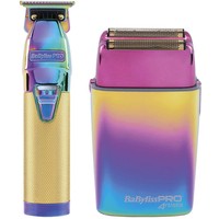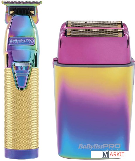 BaByliss PRO FXCHAMPKE Chameleon FX Set - профессиональный набор для финишных работ и сухого бритья. Совершенно новый уровень роскоши, дизайна и высоких технологий! В набор входят два флагманских инструмента из линейки BaByliss PRO 4 Artists: высокоточный триммер Skeleton FX и производительная бритва Foil FX 02 в новом цвете с эффектом хамелеона, который меняется в зависимости от падения света!Шейвер:• Невероятно мощный роторный мотор - 11 000 оборотов в минуту• Комбинированное питание от сети и встроенного аккумулятора• NiMH аккумулятор высокой ёмкости обеспечивает до 3 часов работы• 3 часа полной зарядки• LED-индикатор для контроля заряда встроенного аккумулятора• Система адаптации к напряжению Dual Voltage от 120 до 230 В• Две гипоаллергенные титановые сетки с золотым покрытием• Два независимых подвижных блока ножей• Прочный корпус из полированного металла• Кнопка с защитой от случайного включения• Ширина бреющих сеток 44 мм• Шнур длиной 3 м