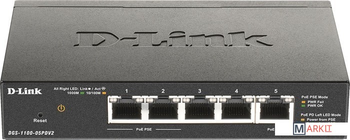 Markit » Коммутаторы » Управляемый коммутатор 2-го уровня D-Link DGS-1100-05PDV2/A1A