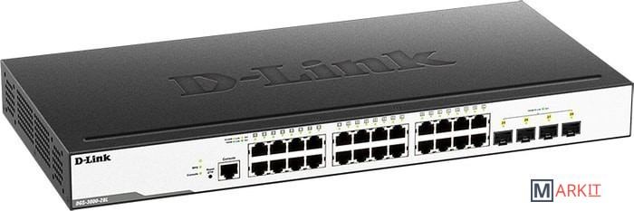 Управляемый коммутатор 2 уровня с 24 портами 10/100/1000Base-T и 4 портами 1000Base-X SFP.