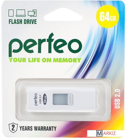 Markit » Флешки USB » USB Flash Perfeo S02 64GB (белый) [PF-S02W064]