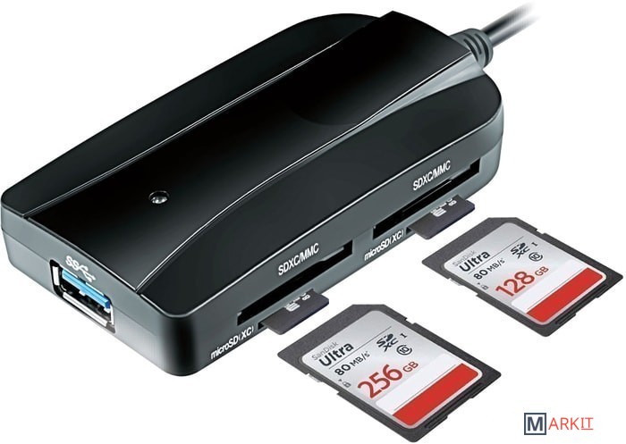 | Кардридер | SD, SDHC, SDXC, microSD, microSDHC, microSDXC, MMC (2x SDXC; 2x microSDXC) |