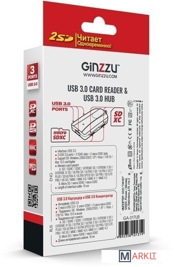 Markit » USB-хабы и док-станции » USB-хаб Ginzzu GR-317UB