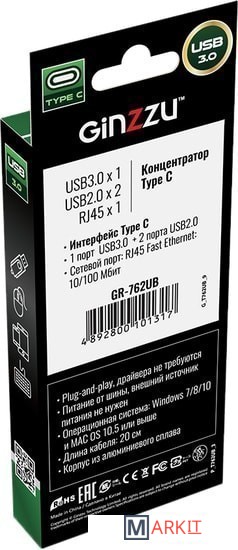 Markit » USB-хабы и док-станции » USB-хаб Ginzzu GR-762UB