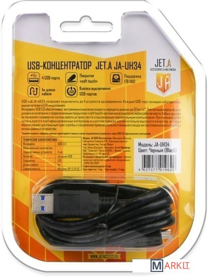 Markit » USB-хабы и док-станции » USB-хаб Jet.A JA-UH34 (черный)