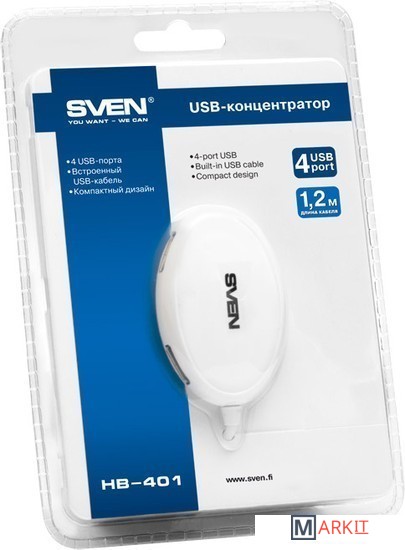 Markit » USB-хабы и док-станции » USB-хаб SVEN HB-401 White