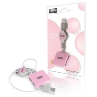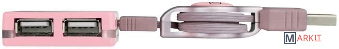 Внешний четырехпортовый концентратор USB 2.0. Концентратор имеет квадратную форму, в которой два USB-порта расположены слева и справа. Максимальная скорость передачи 480 Мбит/с. Он включает в себя убирающийся кабель с возвратным механизмом длиной 0,6 м.