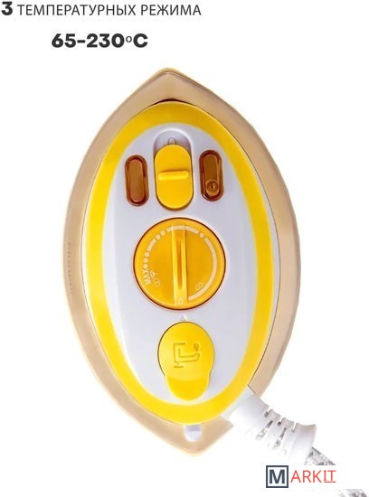 Утюг с выбором напряжения питания: 100-127/220-240 В.Температура нагрева: 65-230 °С.