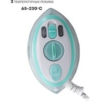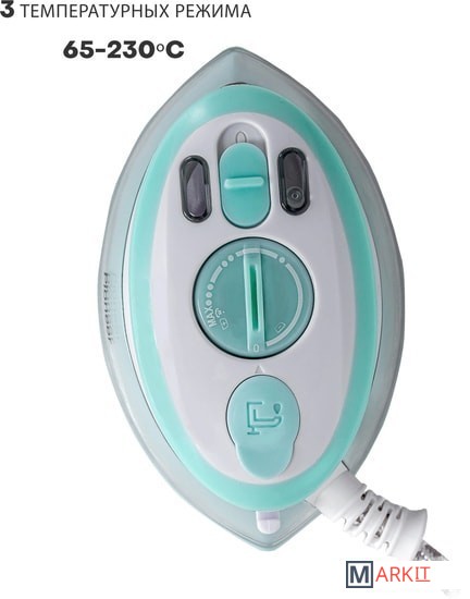 Утюг с выбором напряжения питания: 100-127/220-240 В.Температура нагрева: 65-230 °С.