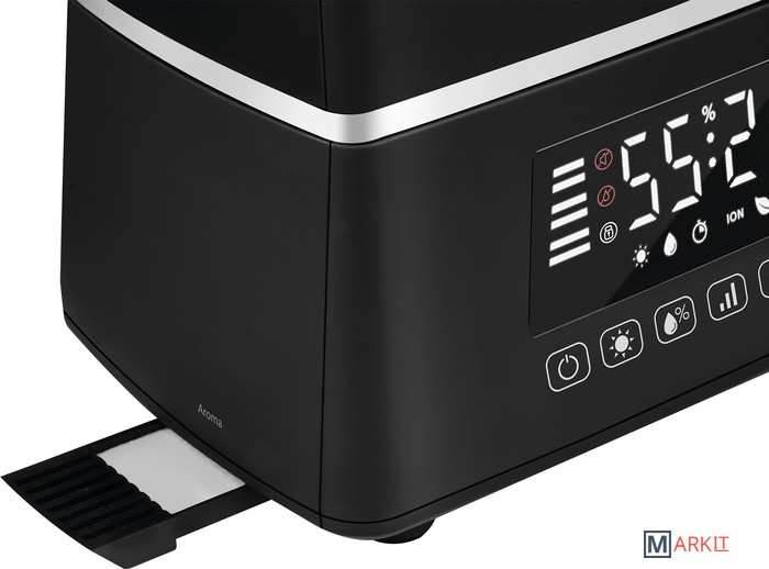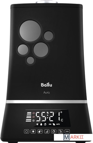 Увлажнитель серии Aura Ballu UHB-1500 - это уникальное сочетание современных технологий увлажнения воздуха, воплощенные в непревзойденном дизайне и гарантирующие исключительную атмосферу комфорта, свежести и уюта в вашем доме. Плавные линии корпуса моментально привлекают внимание, двухуровневая подсветка подчеркивает выразительный черный цвет прибора и придает дополнительную эстетичность его внешнему виду, а специальное покрытие soft touch обладает мягким и приятным тактильным эффектом при его касании. Безупречный комфорт с увлажнителем Aura гарантирован благодаря широкому набору интеллектуальных режимов, включая режим «теплого пара», 3 скоростей увлажнения воздуха, эргономичного пульта дистанционного управления, таймера и автоматического режима работы.ОсобенностиБольшой бак для воды вмещает в себя 7,5 литров, что обеспечивает непрерывное увлажнение в течение 21 часовБезопасное увлажнение в режиме теплого пара за счет нагрева воды до 80°С и ее пастеризацииВстроенная, отключаемая функция ионизации воздуха насыщает воздух полезными для здоровья аэроионамиИнтеллектуальные режимы работы: AUTO, BIO и НочнойТри скорости регулировки интенсивности увлажнения для эффективной работыБлокировка панели управления – защита от детей и от случайного сброса настроекУправление увлажнителем осуществляется как с помощью сенсорной панели управления, так и пультом ДУЯркий, контрастный дисплей в режиме реального времени позволяет отследить текущий уровень влажности, остаток воды в резервуаре, установленные режимы работыTimer на отключение (интервалы времени: 1-24 часов)Фильтр с ионнобменной смолой (AQUA фильтр) очищает водопроводную воду от солей жидкостиvМягкая двухуровневая подсветка резервуара и базы позволяет использовать прибор, в том числе как ночникВстроенная ароматическая капсула