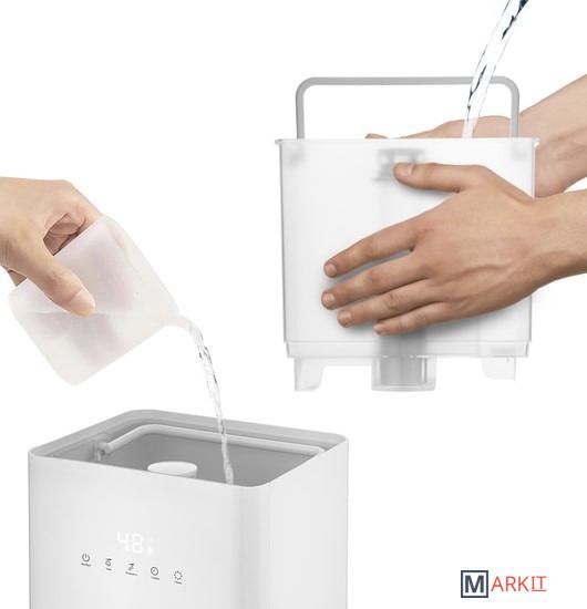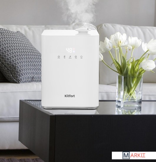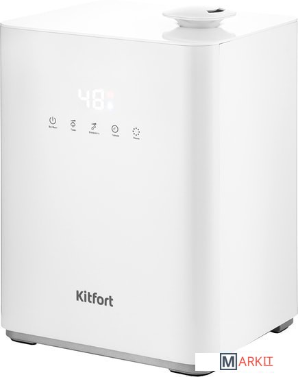 Подарит свежесть и лёгкость!Ультразвуковой увлажнитель воздуха Kitfort KT-2809 увлажняет воздух в помещении и ионизирует его, создавая хороший микроклимат для проживания людей. Может использоваться в помещениях и квартирах, площадь которых не превышает 15–20 м².Умное устройствоС помощью кнопок на передней панели можно установить целевую влажность воздуха 30–90 % с шагом 5, время таймера — от 1 до 12 часов и интенсивность тумана 1, 2 или 3.Удобный налив водыРезервуар у данной модели съёмный, с ручкой. Вы можете наливать воду удобным для вас способом: в установленном или съёмном положении резервуара.Фильтр для смягчения водыВ резервуаре увлажнителя расположен керамический фильтр, благодаря которому вода очищается от примесей и становится мягче за счёт снижения в ней концентрации минеральных веществ.Тёплый туманВ основание корпуса встроен PTC-нагреватель, который нагревает воду примерно до 50 °C, и из увлажнителя выходит тёплый туман. Он быстрее увлажняет воздух в помещении. В процессе нагревания воды погибают некоторые бактерии и микроорганизмы.Автоматический контроль влажностиУвлажнитель оборудован встроенным гигрометром, поэтому может поддерживать заданный вами уровень влажности и отображать его на дисплее.