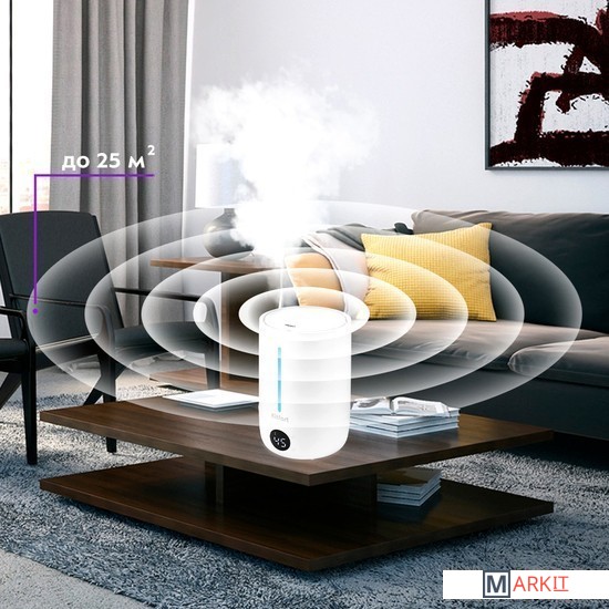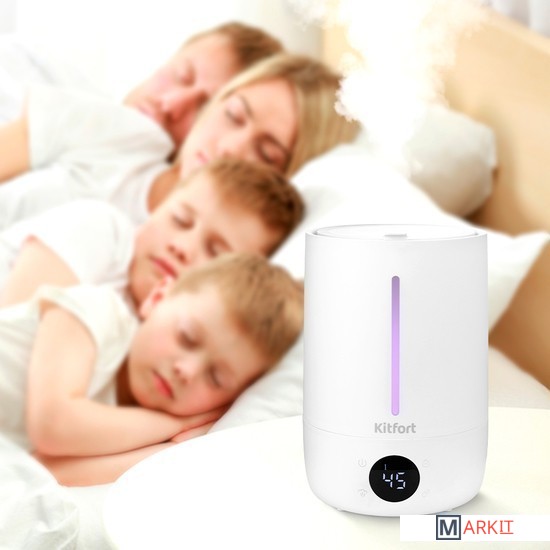 Комфортный климат у вас дома!Ультразвуковой увлажнитель KT-2833 создаст идеальные условия, чтобы вы и ваши близкие могли лучше дышать, спать, расслабиться и чувствовать себя лучше, чем когда-либо! Может использоваться в помещениях, площадь которых не превышает 25 м².Удобный налив водыВместительный резервуар для воды ёмкостью 4,5 л легко наполняется водой - нужно только снять крышку. Когда вода закончится, увлажнитель автоматически переходит в режим ожидания.Спокойный ночной сонУвлажнитель КТ-2833 настолько тихий, что вы забудете, что он включён. Уровень шума не превышает 32 дБ. Звук не мешает спать, отдыхать и не отвлекает от домашних дел.Сенсорное управление и дисплейКнопка «Вкл/Выкл» включает и выключает увлажнитель. Кнопка «Таймер» устанавливает время — от 1 до 12 часов. Кнопка «Влажность» позволяет установить целевую влажность воздуха. Дисплей показывает влажность в помещении и интенсивность тумана.Цвет настроенияМерная шкала увлажнителя подсвечивается разными цветами, создавая приятную атмосферу в доме. Время работы увлажнителя с полным резервуаром при нормальном режиме 30 ч, при максимальном 15 ч.