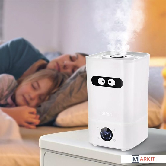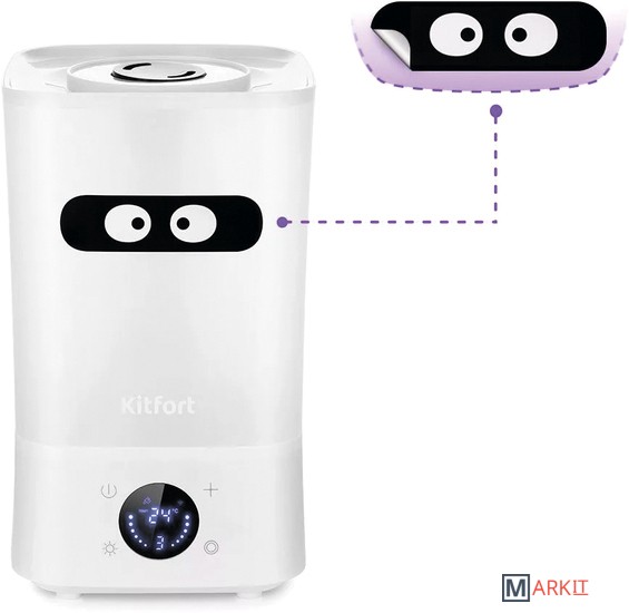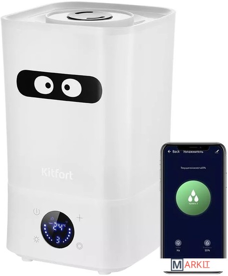 С заботой о вашем самочувствии!Ультразвуковой увлажнитель воздуха KT-2837 увлажняет воздух в помещении и ионизирует его, создавая хороший микроклимат для проживания людей. Устройство может использоваться в помещениях, площадь которых не превышает 20 м².Управление со смартфона или на сенсорном дисплееУправление увлажнителем осуществляется при помощи сенсорных кнопок на панели управления или через мобильное приложение на смартфоне. Вы можете установить влажность воздуха 45-90% с шагом 5, время таймер от 1 до 8 часов и интенсивность тумана 1,2 или 3.Установите мобильное приложение!Установите мобильное приложение «Smart Life», и с помощью WiFi подключите увлажнитель к вашему смартфону. В приложении вы можете настроить ионизацию, интенсивность тумана, таймер и расписание автоматического включения устройства.Удобно наполнять водойРезервуар у модели КТ-2837 съёмный. Вы можете наливать воду удобным для вас способом: в установленном положении, сняв верхнюю крышку или в съёмном положении резервуара.Керамический фильтр для смягчения водыВ основании увлажнителя расположен керамический фильтр, благодаря которому воды очищается от примесей и становится мягче за счёт снижения в ней концентрации минеральных веществ.Прост в использованииУвлажнитель КТ-2837 простой в эксплуатации и обслуживании: детали легко разбираются и быстро моются!Подстраивается под васНаправляйте вращающееся на 360 градусов сопло туда, куда вам нужно, и выберите желаемый уровень тумана. Создайте идеальный климат в помещении!Главней всего – погода в доме!Увлажнитель оборудован встроенным гигрометром, поэтому может поддерживать заданный вами уровень влажности и отображать его на дисплее. Также вы можете дополнительно включить функцию ионизации, которая препятствует распространению вирусов и бактерий.Отклеивающийся стикер!С нашей техникой очень легко подружиться, потому что она не только лёгкая и функциональная, но и будто живая с весёлыми глазами. Никого не оставит равнодушным! В любой момент вы можете отклеить этот стикер без вреда для поверхности.Длина шнура: 0.8 м.