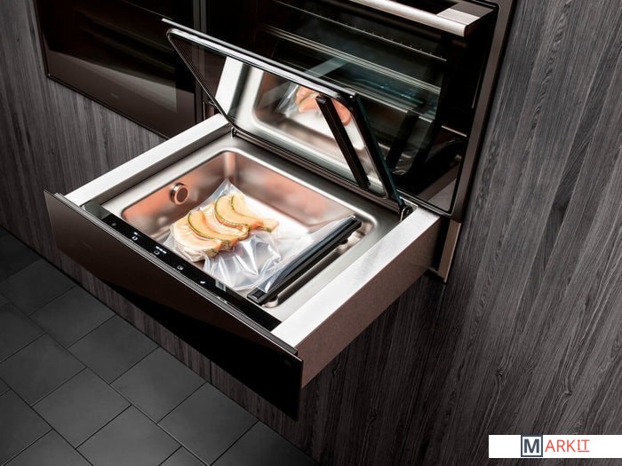 Объем камеры: 8 литров. Максимальный размер пакета: 250 x 350 мм. Нажимной механизм открывания. Выдвижной ящик на телескопических направляющих.Сенсорная панель управления. 3 уровня вакуума. 3 продолжительности запайки для пакетов различной толщины.