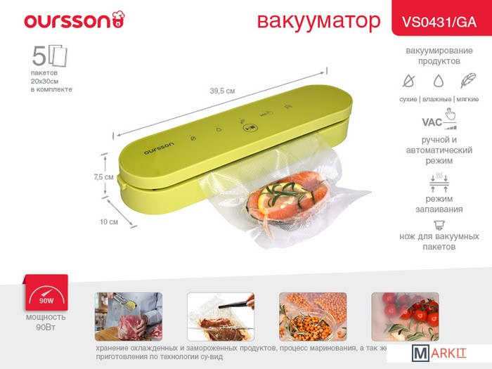Markit » Вакуумные упаковщики » Вакуумный упаковщик Oursson VS0431/GA