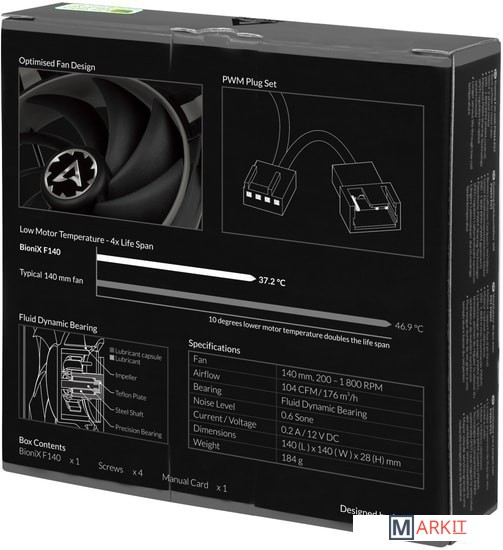 Markit » Системы охлаждения » Вентилятор для корпуса Arctic BioniX F140 (серый)