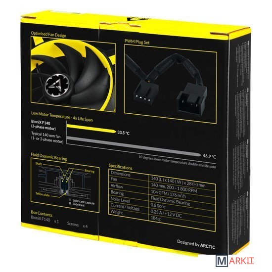 Markit » Системы охлаждения » Вентилятор для корпуса Arctic BioniX F140 (желтый)