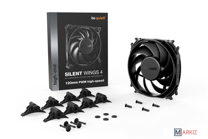 Silent Wings 4 120mm PWM high-speed сочетает все особенности практически бесшумного вентилятора с чрезвычайно высокой производительностью охлаждения для самых требовательных приложений.Оптимизированные лопасти вентилятора для максимальной производительности на радиаторах CВО и кулеровУменьшенный зазор между лопастями и рамкой вентилятора c воронкообразным выходным отверстием для очень высокого давления воздуха Очень тихая работа даже на максимальной скорости6-полюсный мотор вентилятора и гидродинамический подшипник для снижения вибраций и очень плавной работыАнтивибрационное крепление с нажимными штифтами и возможность установки при помощи винтовДлительный срок службы до 300 000 часовЭлегантный внешний вид с качественной наклейкой вентилятора в полностью черном корпусеSilent Wings 4 120mm PWM high-speed — лучший выбор для любого сценария использования вентилятора. Будь то установка в корпус, на радиатор кулера или системы водяного охлаждения — такие его особенности, как оптимизированные для бесшумной работы лопасти и воронкообразная рамка вентилятора, делают Silent Wings 4 120mm PWM high-speed именно тем решением, которое не приемлет компромиссов между практически бесшумной работой и высокой производительностью охлаждения.Silent Wings 4 120mm PWM high-speed обеспечивает очень высокое давление воздуха и, следовательно, значительно повышает производительность системы охлаждения. Высокий уровень воздушного давления достигается за счет уменьшенного зазора между лопастями и рамкой вентилятора, что позволяет Silent Wings 4 120mm PWM high-speed гарантировать надежное охлаждение ПК даже в самых требовательных программах.Silent Wings 4 120mm PWM high-speed укомплектован двумя вариантами креплений. Предварительно установленное антивибрационные крепления сводят к минимуму генерирующие шум вибрации. Для установки на радиаторы кулеров и СВО лучше подходят пластиковые крепления. Оба решения обеспечивают практически бесшумную работу вентилятора на номинальной скорости.6-полюсный мотор вентилятора с 3 фазами обеспечивает очень низкое энергопотребление, меньшие вибрации и, следовательно, бесшумную работу с макс. 31,2 дБ(A). Использование этой передовой технологии обеспечивает очень плавную работу и низкое энергопотребление вентилятора.Усовершенствованный гидродинамический подшипник (FDB) обеспечивает крайне длительный срок эксплуатации вентилятора до 300 000 часов. Кроме того, он значительно снижает вибрации и гарантирует практически бесшумную работу Silent Wings 4 120mm PWM high-speed.Установленный на радиаторе кулера или внутри корпуса, Silent Wings 4 120mm PWM high-speed всегда производит отличное впечатление. Высокая производительность и впечатляющий внешний вид Silent Wings 4 120mm PWM high-speed с полностью черным дизайном в сочетании со стильной центральной наклейкой вентилятора делает его изюминкой любой системы.