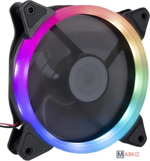 Светодиодный вентилятор от Argus с 12 RGB-светодиодами, которые расположены за полупрозрачным кольцом.Прорезиненные прокладки в углах вентилятора по обеим сторонам вентилятора обеспечивают работу без вибрации.