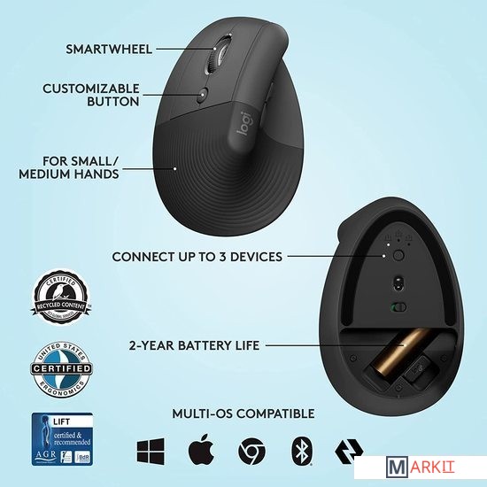 Вертикальная мышь Logitech Lift Left (графит) Код: 401885
