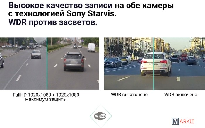 Современное устройство с превосходной ночной съемкой на Sony IMX327. Краткие и уникальные голосовые оповещения о камерах контроля. Одновременная запись на 2 камеры в разрешение FullHD. Включайте помощника парковки одной клавишей. Встроенный Wi-Fi позволит просмотреть, через официальное приложение, любую запись на смартфоне или планшете, а также поделиться ей через соцсети и мессенджеры, обновить базу камер.