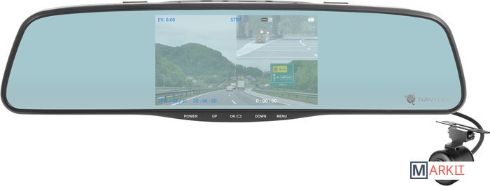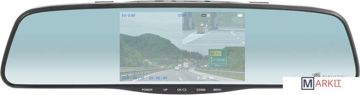 NAVITEL MR250 – 5-дюймовое smart-зеркало заднего вида, которое сочетает в себе функции, необходимые для безопасного вождения. Устройство оснащено видеорегистратором, который записывает все, что происходит на дороге перед вашим автомобилем, и дополнительной камерой заднего вида. Зеркало встроено в прочный металлический корпус. Камера заднего вида устойчива к воздействию влаги и может крепиться снаружи автомобиля на рамку номерного знака.