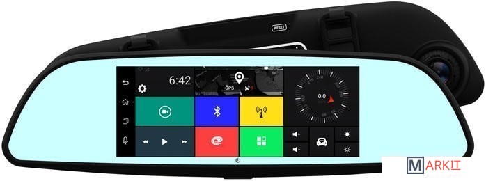 Автомобильный видеорегистратор в корпусе накладки на зеркало. Выносная вторая камера с функцией записи. Операционная система Android. Навигатор. Предупреждение о камерах и радарах. 3G. GPS и GSM. Bluetooth. Wi-Fi.