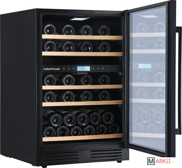 CellarPrivate CP043-2TB это двухзонный холодильник для вина, вместимостью до 43 бутылок. Температура выставляется в каждой зоне раздельно, что позволяет хранить одновременно красные и белые вина.Температура в верхней зоне настраивается от 5-12°С / в нижней 12-20°С.Сенсорные кнопки управления температурой и подсветкой расположены на панели за стеклянной дверцей.Данная модель винного шкафа оснащена компрессорной системой охлаждения, за счёт чего его можно использовать в достаточно тёплом помещении, при этом, он будет стабильно держать заданную температуру.CP043-2TB можно встраивать под столешницу либо в любую нишу, также можно использовать и как отдельностоящий винный шкаф. Высота регулируется при помощи ножек до +7см.Постоянное проветривание бутылок обеспечивается бесшумными вентиляторами, установленными внутри камер это предотвращает появление посторонних запахов и образование плесени. CellarPrivate CP043-2TB оснащён четырьмя деревянными съёмными полками, на которых с легкостью разместятся любые бутылки.