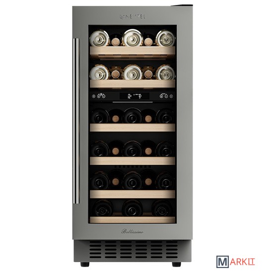 Винный шкаф Meyvel MV28-KST2Модель MV28-KST2 имеет привлекательный внешний вид, сочетающий в себе неподвластное времени очарование натуральных материалов с высокотехнологичными системами сохранения продуктов. Винный холодильник Meyvel MV28-KST2 оснащен дверью с защитой от ультрафиолетовых лучей и отлично подойдет для хранения и созревания различных сортов вин. Динамическая система охлаждения обеспечивает оптимальную температуру для вина и сохраняет необходимую влажность внутри камеры.Универсальный микроклиматКомпрессорный винный шкаф Meyvel MV28-KST2 обладает большой вместимостью и даёт возможность разместить до 28 бутылок стандартного типа Бордо (0,75 л). Располагаются они на выдвижных полках из дерева. Внутреннее пространство шкафа разделено на 2 температурные зоны, с возможностью настраивать каждую из них. Общий диапазон температуры у данной модели от +5°C до +20°C.Сенсорный дисплейБыстро задавайте необходимую температуру для содержимого и управляйте всеми функциями холодильника с помощью интуитивно-понятного расположения клавиш на сенсорном дисплее.Комфортное расположениеMeyvel MV28-KST2 отлично подходит для расположения на любой кухне. Шкаф можно встроить под столешницу, а так же, перенавесить дверь для более удобного использования (петли входят в комплект).