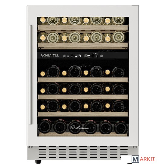 Винный шкаф Meyvel MV46PRO-KWT2Модель MV46PRO-KWT2 имеет привлекательный внешний вид, сочетающий в себе неподвластное времени очарование натуральных материалов с высокотехнологичными системами сохранения продуктов. Винный холодильник Meyvel MV46PRO-KWT2 оснащен дверью с защитой от ультрафиолетовых лучей и отлично подойдет для хранения и созревания различных сортов вин. Динамическая система охлаждения обеспечивает оптимальную температуру для вина и сохраняет необходимую влажность внутри камеры.Универсальный микроклиматКомпрессорный винный шкаф Meyvel MV46PRO-KWT2 обладает большой вместимостью и даёт возможность разместить до 46 бутылок стандартного типа Бордо (0,75 л). Располагаются они на выкатных полках из дерева. Внутреннее пространство шкафа разделено на 2 температурные зоны, с возможностью настраивать каждую из них. Диапазон верхней зоны варьируется от +5°C до +12°C, а нижней - от +12°C до +20°C.Сенсорный дисплейБыстро задавайте необходимую температуру для содержимого и управляйте всеми функциями холодильника с помощью интуитивно-понятного расположения клавиш на сенсорном дисплее.Комфортное расположениеMeyvel MV46PRO-KWT2 отлично подходит для расположения на любой кухне. Шкаф можно встроить под столешницу и отрегулировать ножки по высоте, а так же, перенавесить дверь для более удобного использования (петли входят в комплект).Фильтрация поступающего воздухаВ винный шкаф встроен угольный фильтр, который будет очищать поступающий воздух от посторонних запахов, которые губительно влияют на вкусовые качества вина.Рекомендуем проводить замену фильтра 1 раз в год.