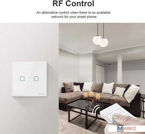 SONOFF T2EU2C-RF - это 2-канальный радиовыключатель, работающий от батареек. Его можно подключить к мосту Sonoff RF Bridge для управления другими реле через сценарии, либо напрямую связать с одним из выключателей Sonoff серии T1, T2, T3 или T4. Именно с добавлением беспроводного выключателя к проводному можно реализовать проходной режим для лестницы! Сенсорная панель имеет пластиковую окантовку, защищающую выключатель от случайных боковых ударов.Подсветка светонакопительная - светится только несколько часов после отключения света в помещении с выключателем.Выключатель легко программируется по частоте 433,92 МГц. Может управлять напрямую релейными модулями RFR2, RFR3, 4Ch Pro R3, T1, T2, T3.Внимание: Обратите внимание на то, что выключатель не комплектуется источником питания. Для работы необходимы батарейки - 2 штуки «CR2032 (3V)».