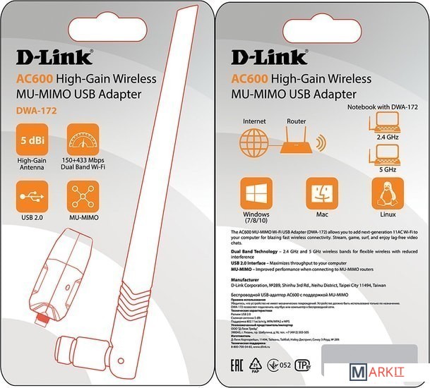 Markit » Беспроводные адаптеры » Wi-Fi адаптер D-Link DWA-172/RU/B1A